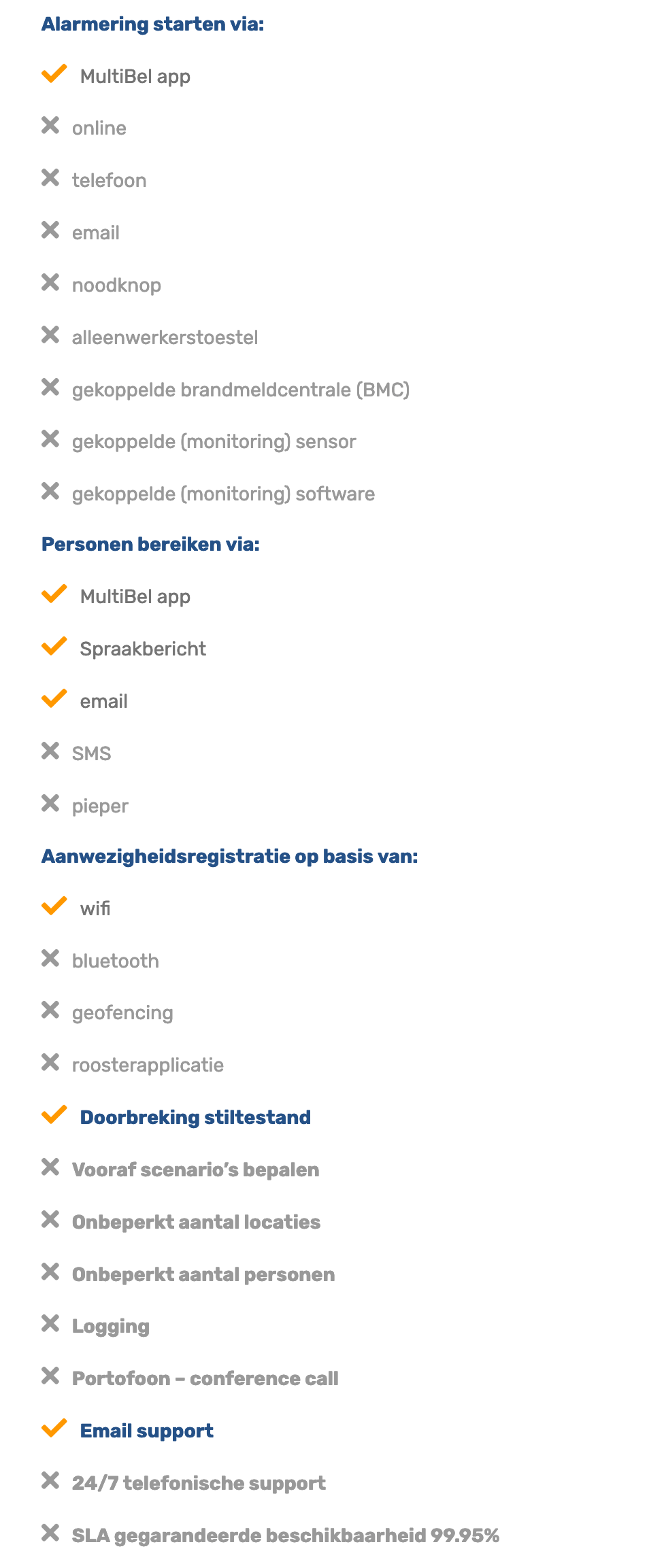 MultiBel Standaard is vaak een goede keuze voor kleinere organisaties waar calamiteiten een relatief kleine impact hebben. Het oproepsysteem functioneert beter dan verouderde piepersystemen, bellijsten of WhatsApp groepen, maar biedt ten opzichte van MultiBel Professional slechts een beperkt aantal functionaliteiten. Het is een FREEMIUM dienst om kennis te maken met onze oproepdienst.