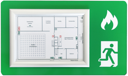 De zichtbaarheid van vluchtplannen zijn in ieder gebouw belangrijk. Deze nieuwe vluchtplan uitvoeringen dragen daaraan bij. Dit Plexiglasbord met luxe uitstraling, is geprint met een brand- en evacuatiepictogram. Daarnaast zorgt de aluminium kliklijst ervoor dat u gemakkelijk uw vluchtroute kunt toevoegen of kunt wijzigen. U kunt dit bord met en zonder afstandhouders gebruiken.