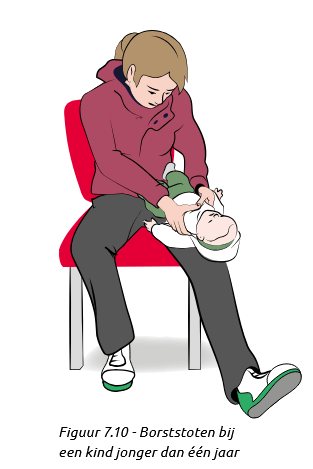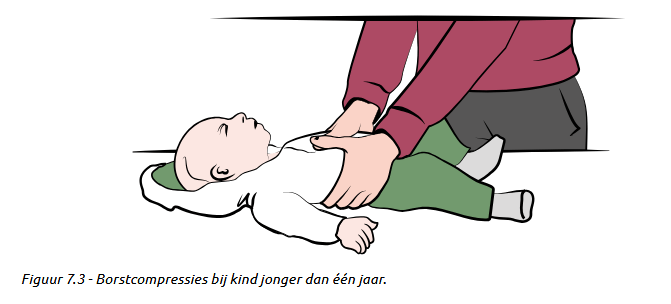 Twee-duimen-omcirkeltechniek (TDOT) bij verslikking én reanimatie van een kind jonger dan één jaar.